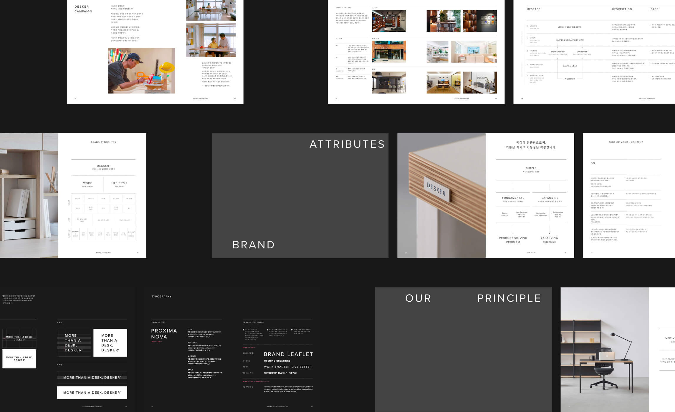 As Desker grew in scale and sales, the need for consistent brand communication became essential. The goal was to create an internal brand book that consolidates Desker’s core assets — defining its visual rules, tone, and external communication guidelines. This publication serves as a foundation for maintaining coherence across all brand touchpoints, both inside and outside the organization.