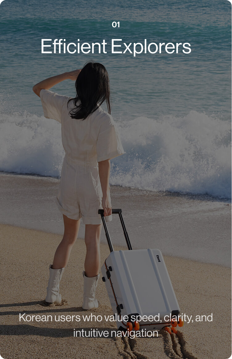 Floyd primarily appeals to modern travelers in their 20s and 30s who seek both practicality and personality. To meet the expectations of Korean users — who value speed, clarity, and intuitive navigation — the localized UX was simplified while maintaining Floyd’s vibrant visual energy. The strong use of black heightened contrast and emphasized product color diversity, aligning with style-driven consumers who favor bold aesthetics and expressive design.
