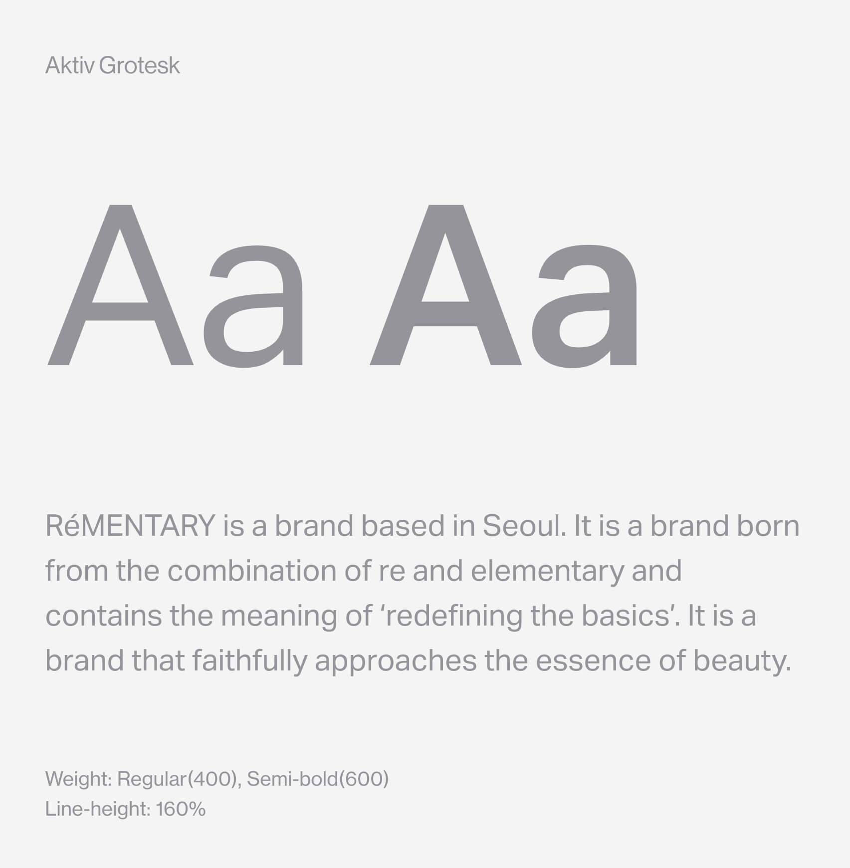 To align with Rémentary’s minimal and contemporary aesthetic, Aktiv Grotesk was chosen as the primary typeface. Its clean geometry and balanced proportions reflect the brand’s focus on clarity and restraint — understated yet confident. The typography acts as a subtle framework, enhancing the visual rhythm without overpowering the content.