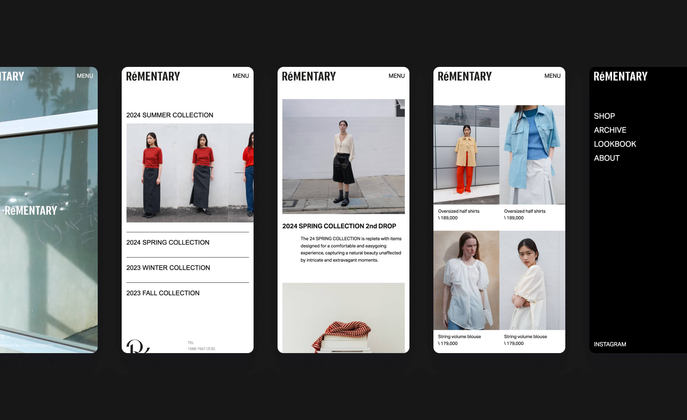 For each collection, Rémentary released digital editorials — immersive landing experiences that present seasonal products and imagery in harmony. The layouts highlight the brand’s understated mood through rhythm and flow, enhanced by subtle typography animation and smooth transitions. Each showcase bridges visual storytelling with commerce, allowing users to feel the season before exploring the products.